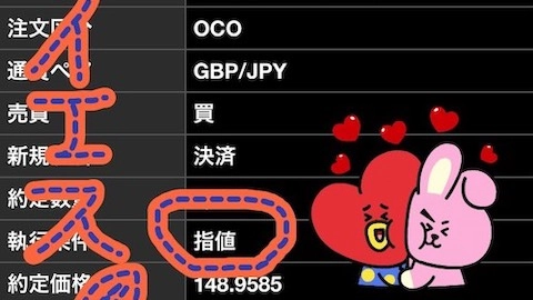 - 利益確定と損切りは、OCO決め打ち