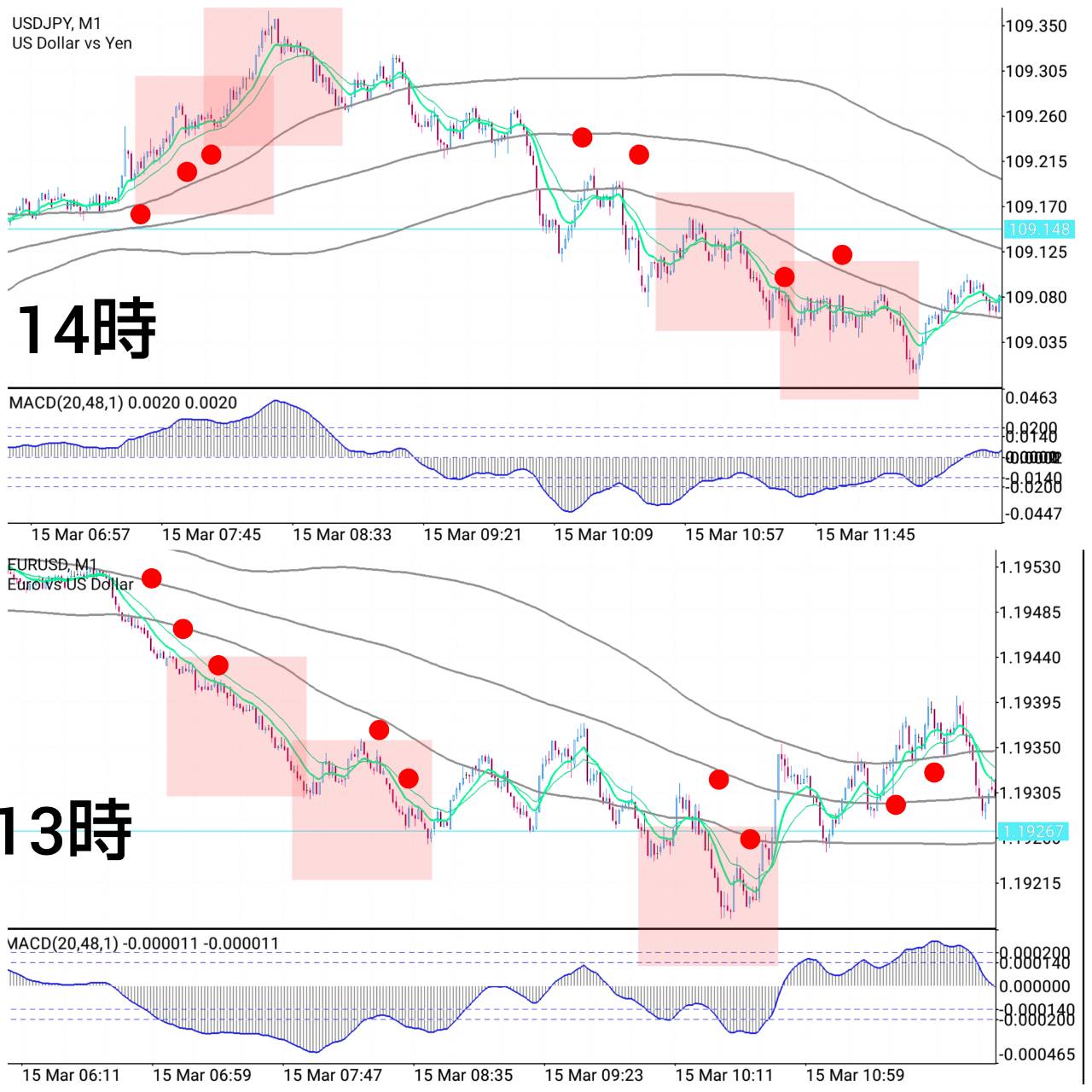 ともにロンドン時間、ちょっと前からの流れが最も狙い目でした