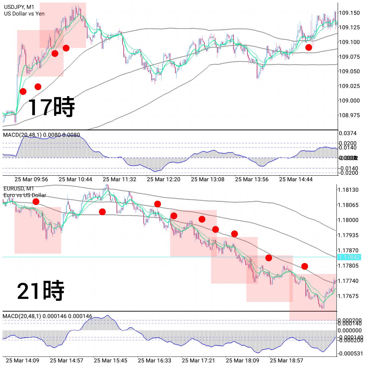 【3/25のエントリー】2通貨ペア、それぞれ1方向だけでも、サクッと達成+10pips