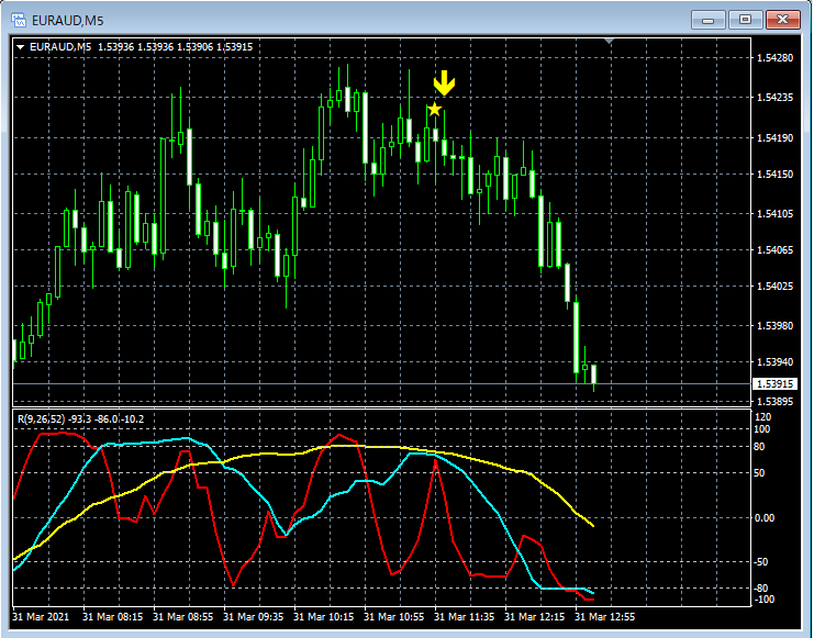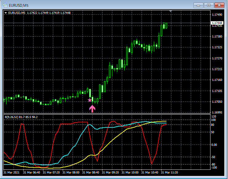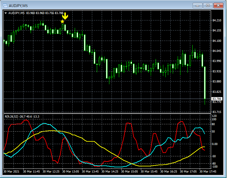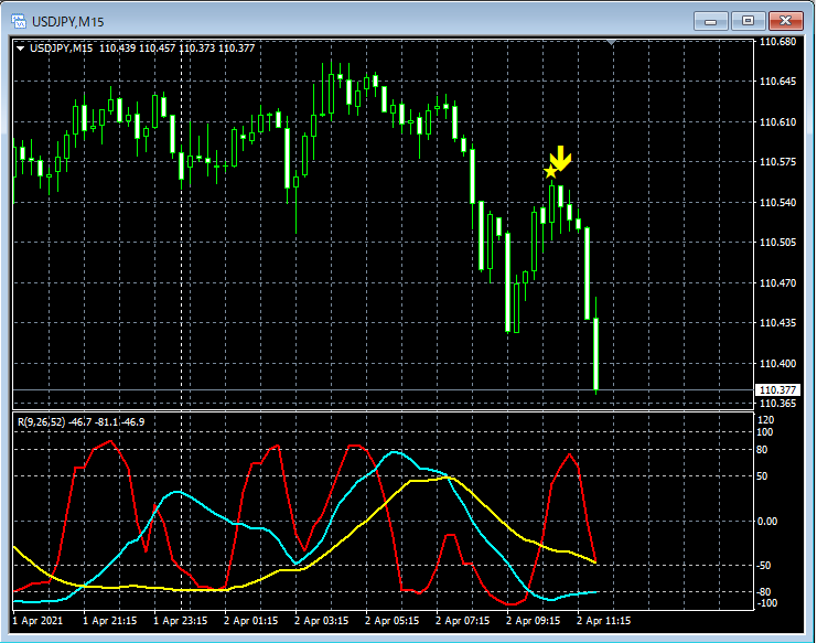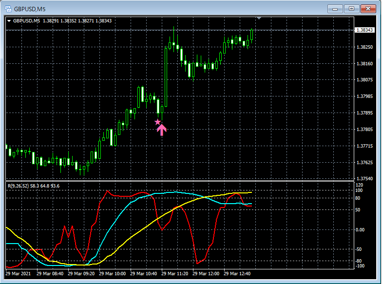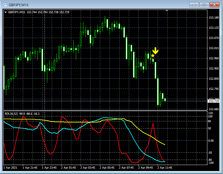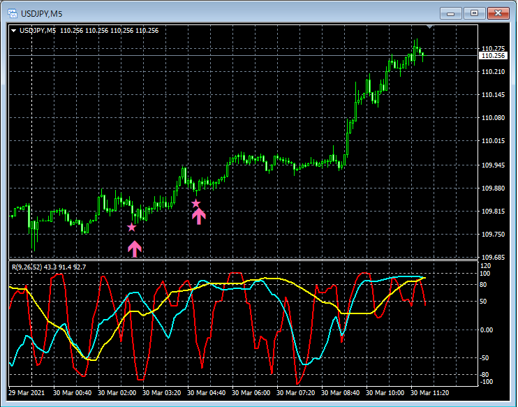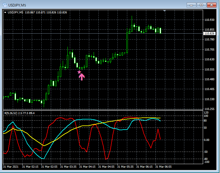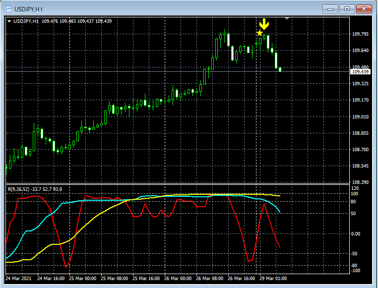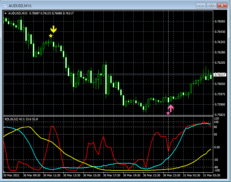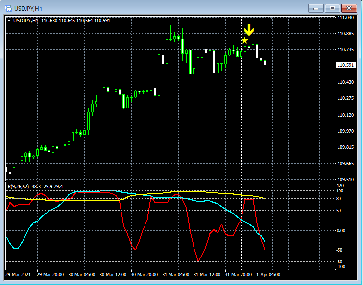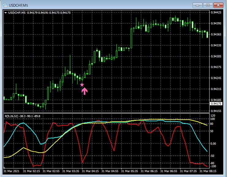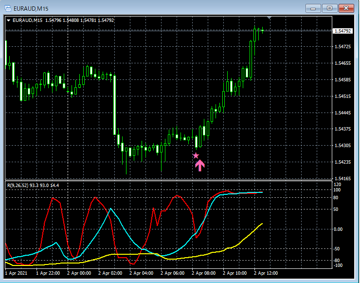 RCI3本ラインとの組み合わせで威力を発揮するインジケーター 3月29日~4月2日に見られたサインの例