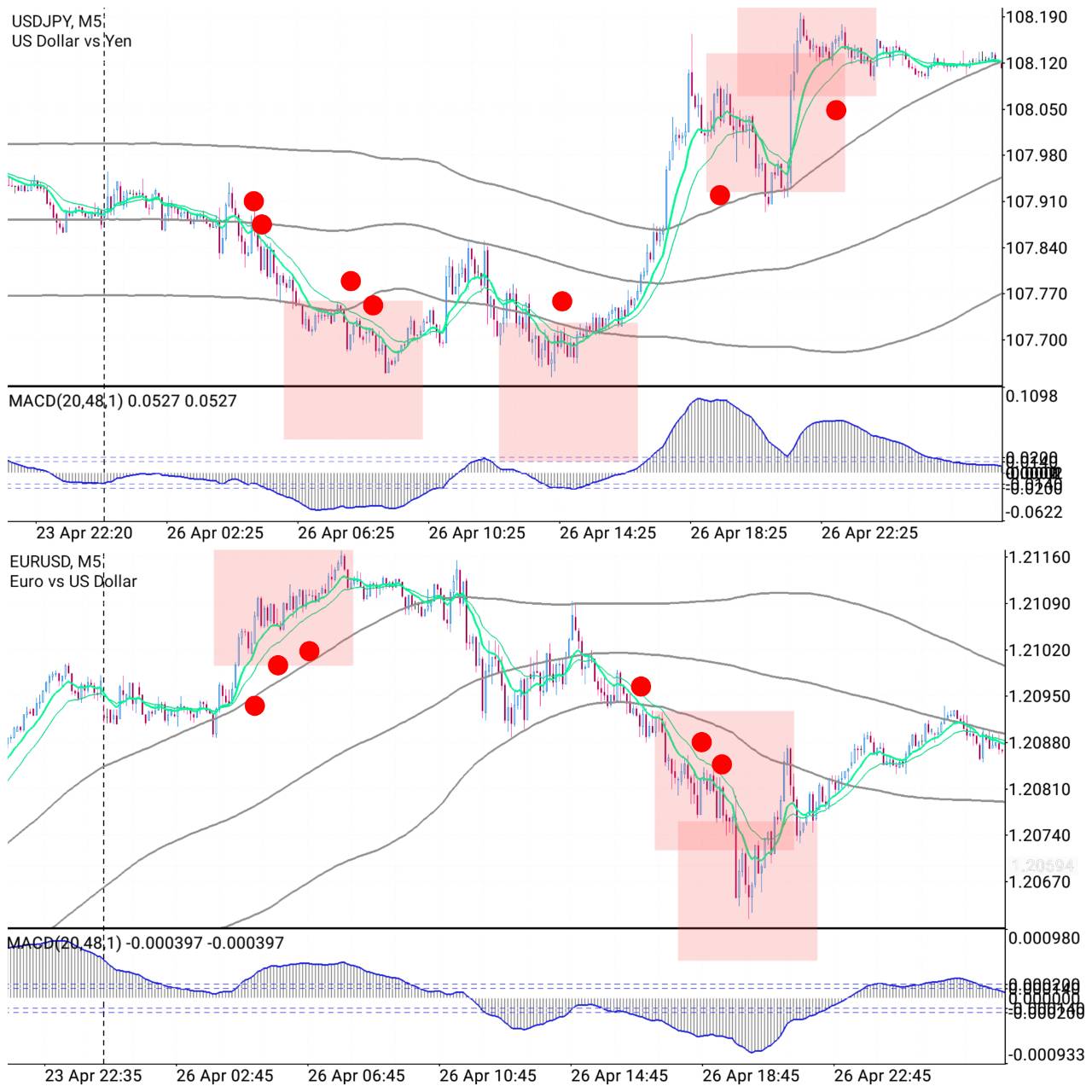 赤点:1日+3~10pipsのスキャルロジック(エントリーポイント)
