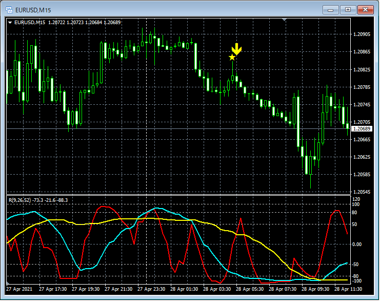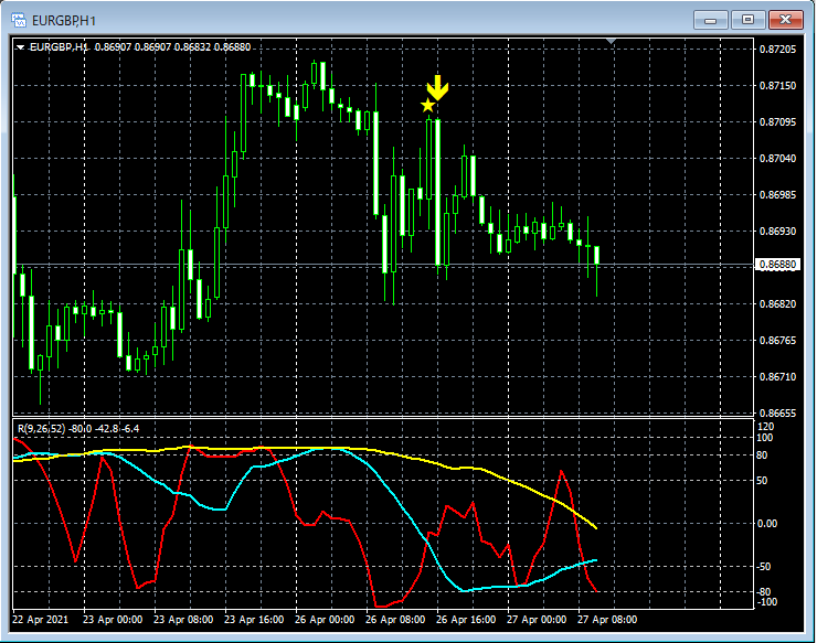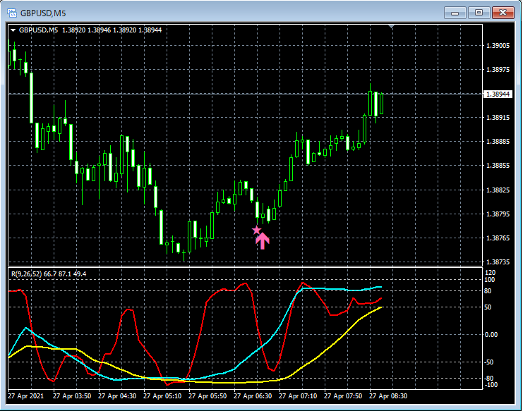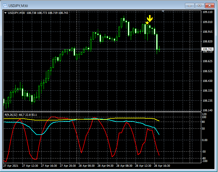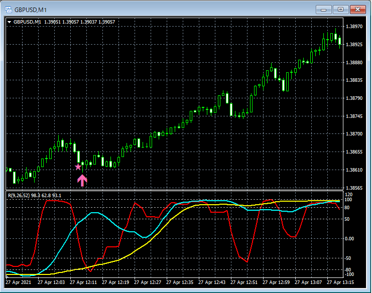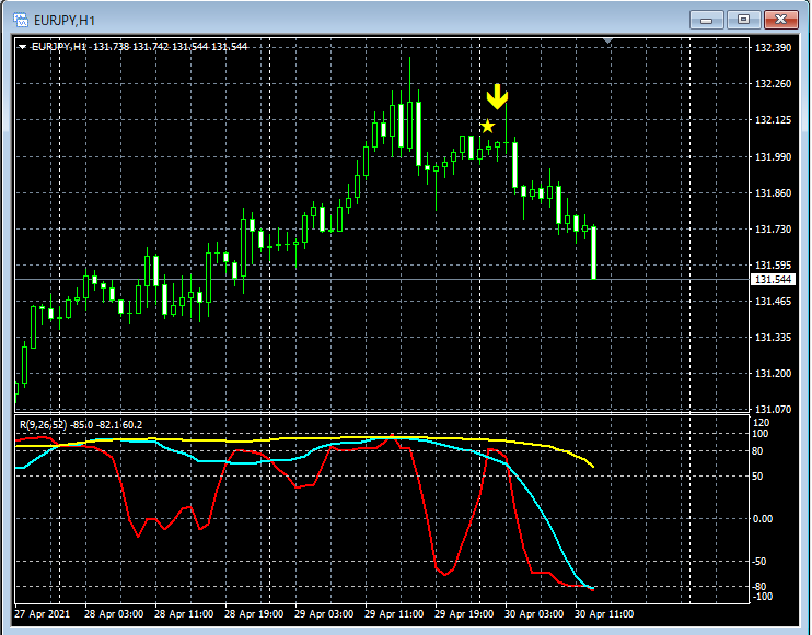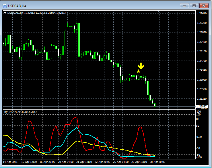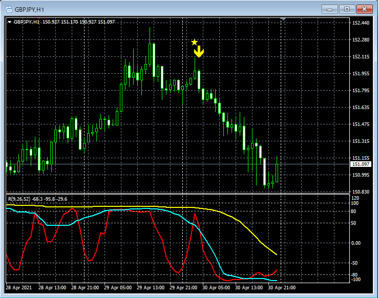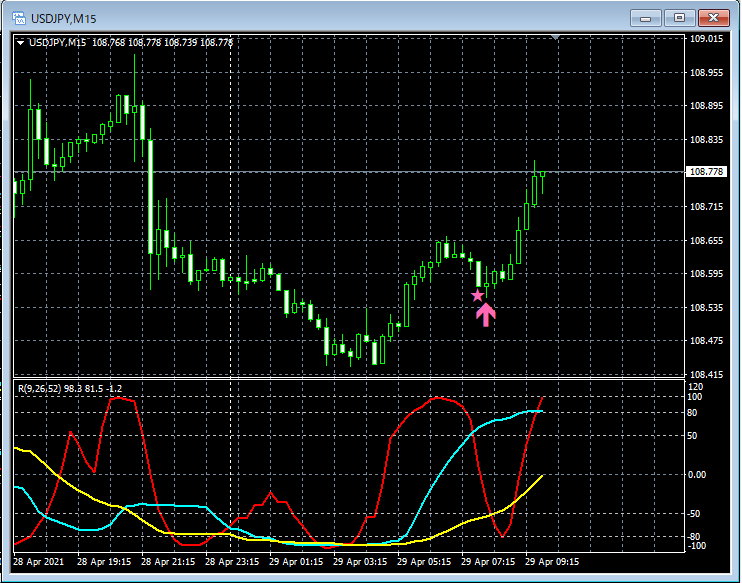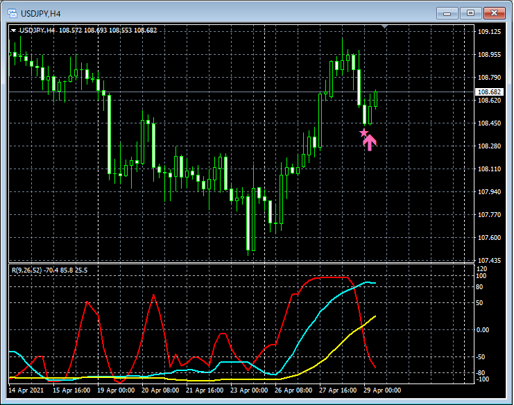 RCI3本ラインとの組み合わせで威力を発揮するインジケーター 4月26日~4月30日に見られたサインの例