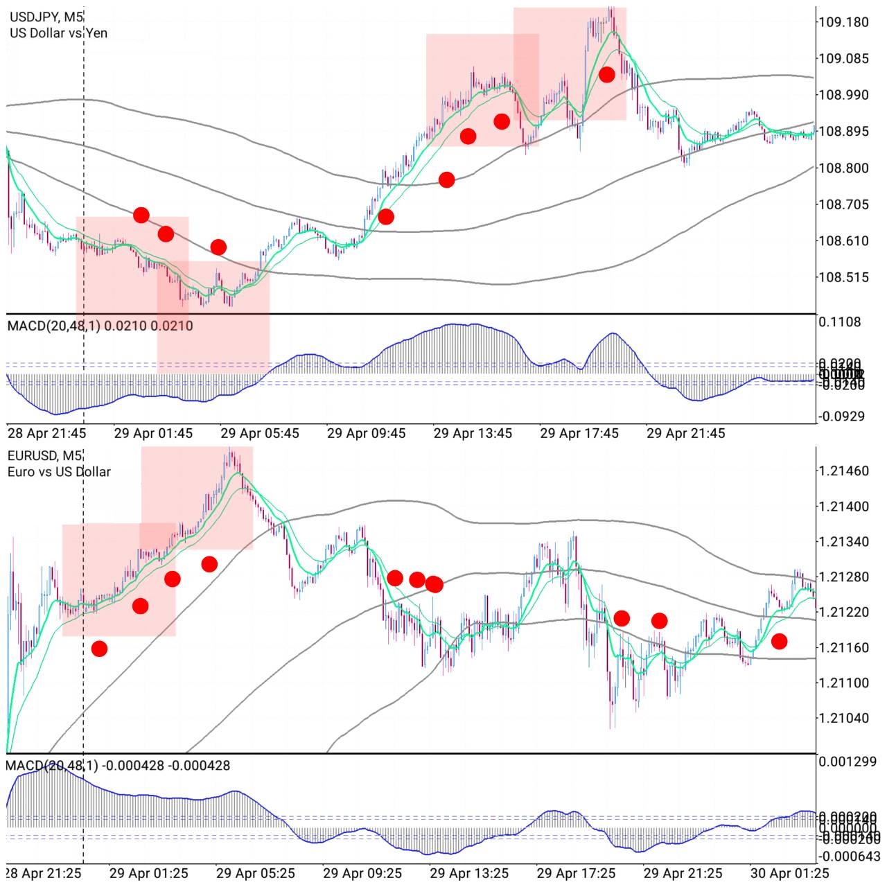 赤点:1日+3~10pipsのスキャルロジック(エントリーポイント)