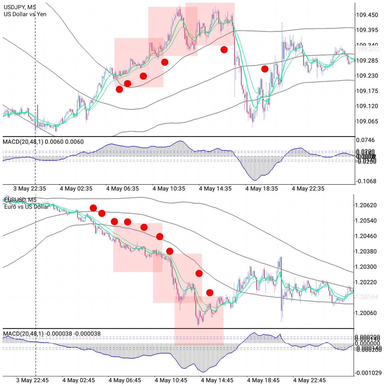 赤点:1日+3~10pipsのスキャルロジック(エントリーポイント)
