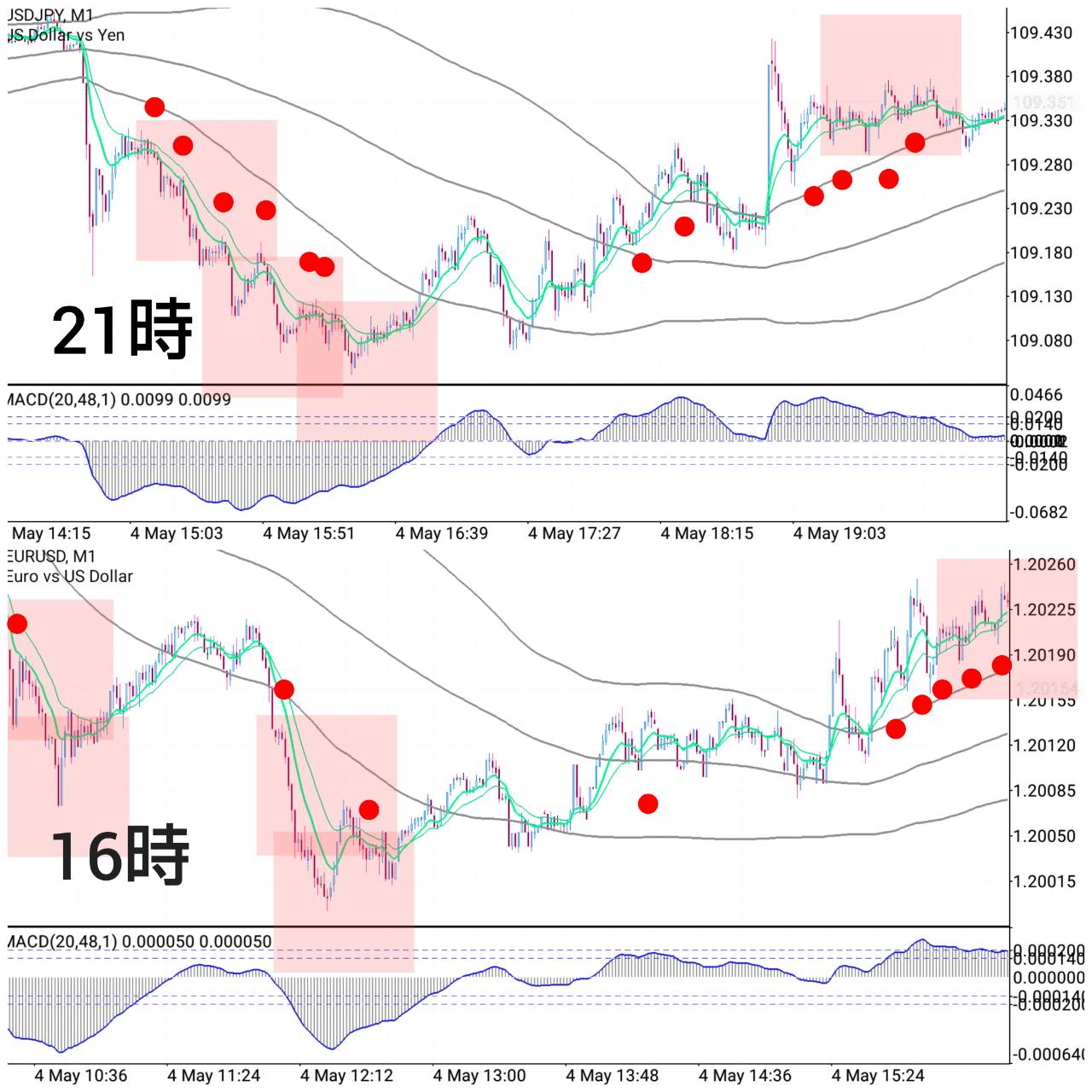 ドル円とユーロドルが連動してる時は、どっちも狙えるので楽です
