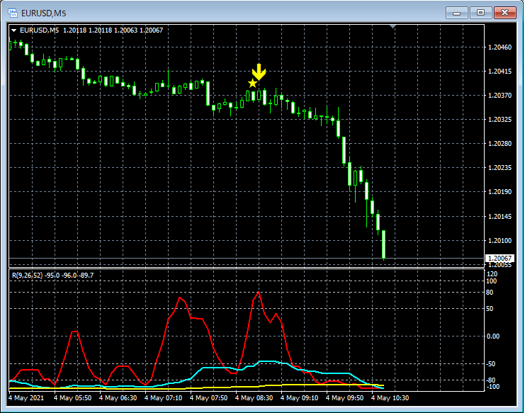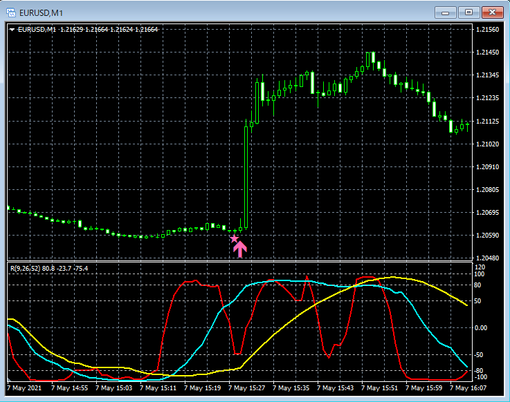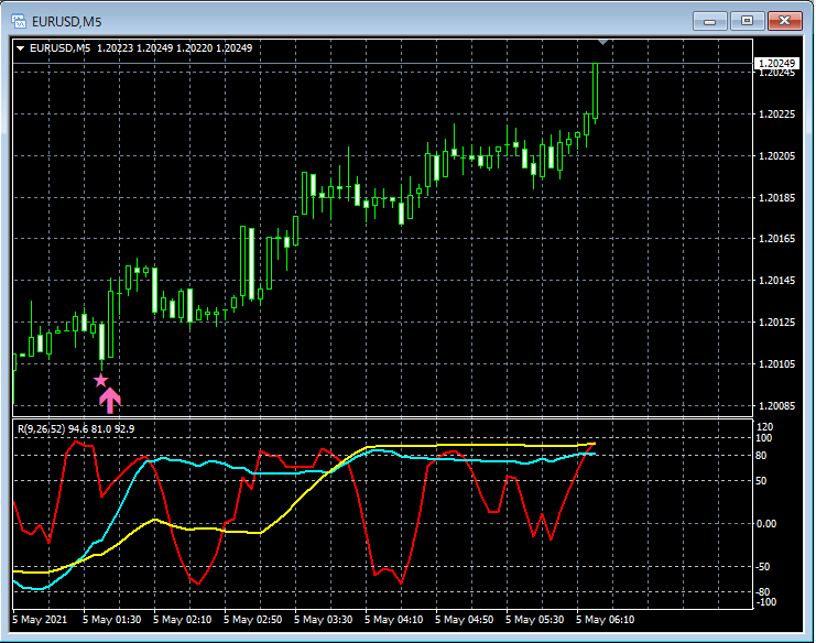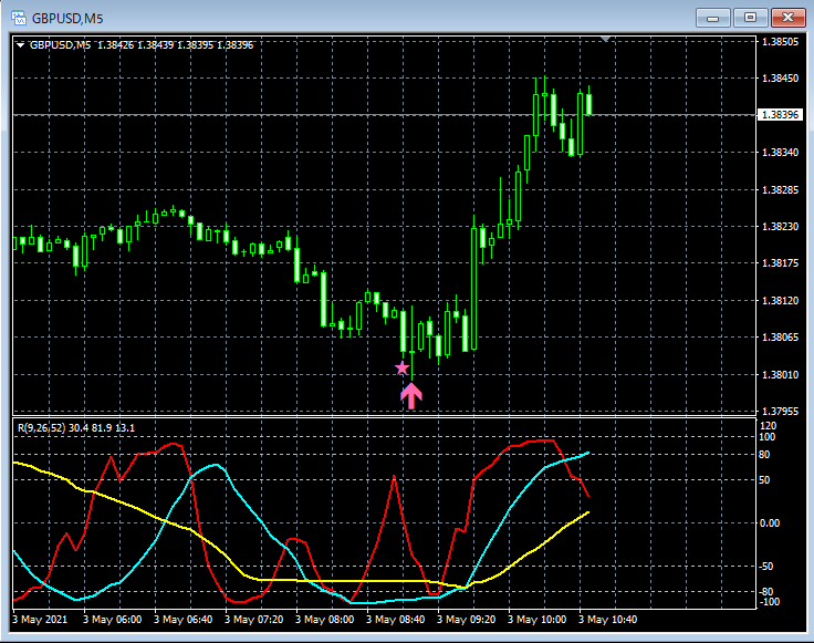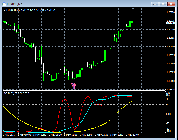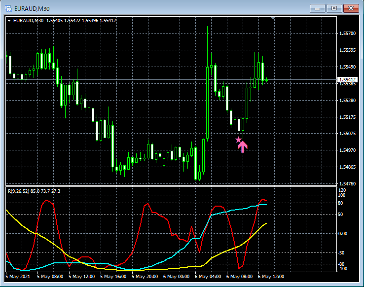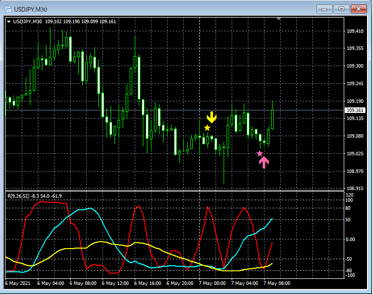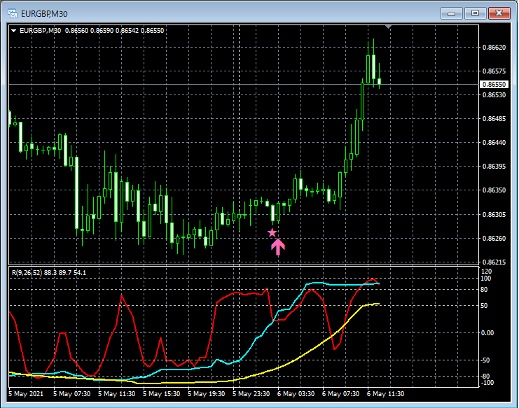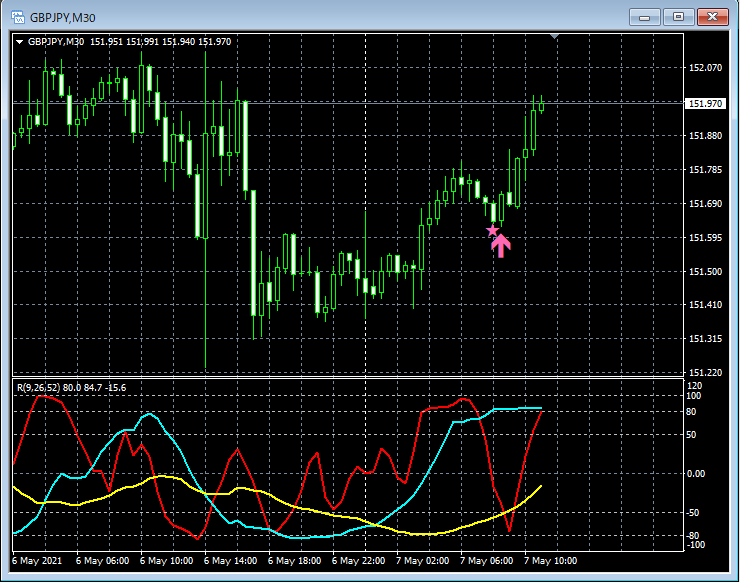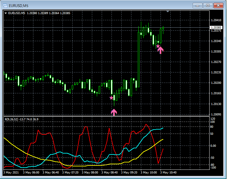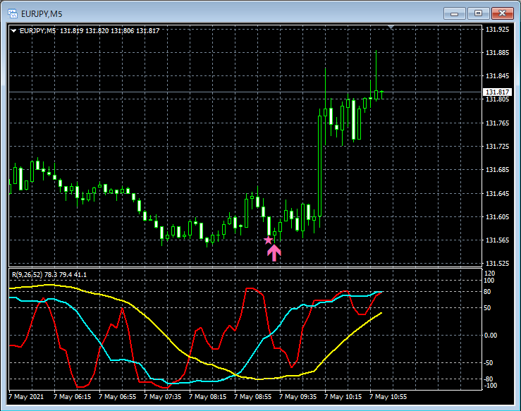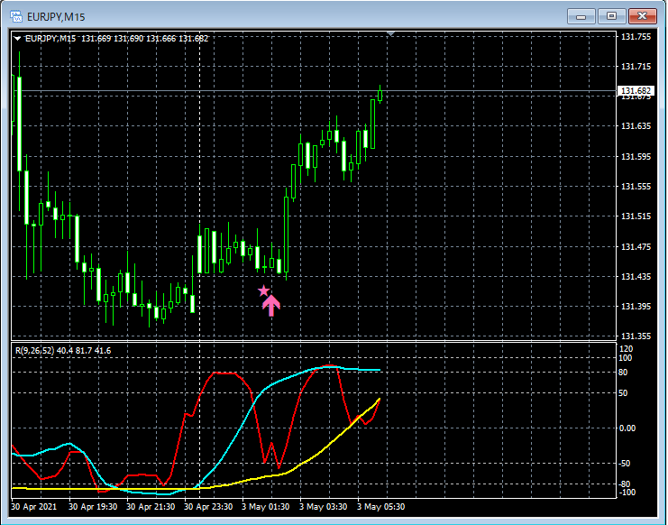 RCI3本ラインとの組み合わせで威力を発揮するインジケーター 5月3日~5月7日に見られたサインの例