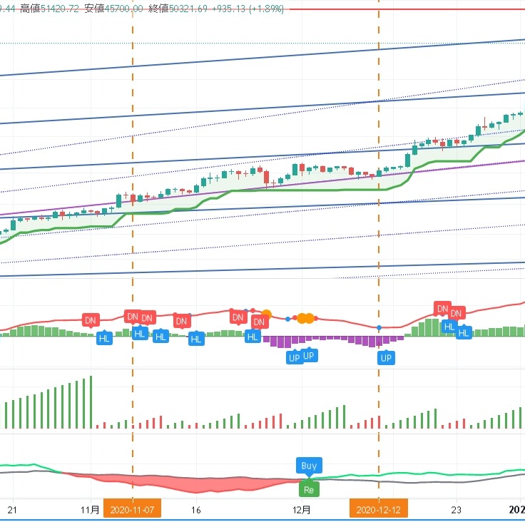 ③、④のラインは中期アップチャネル。