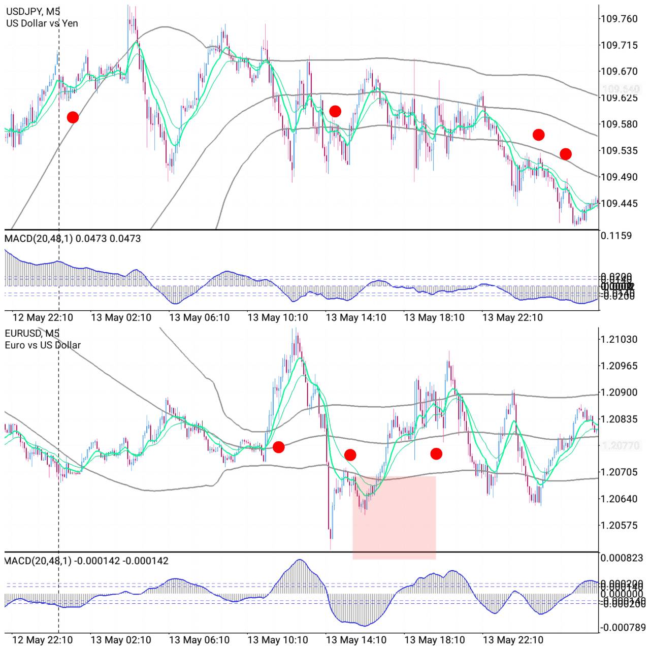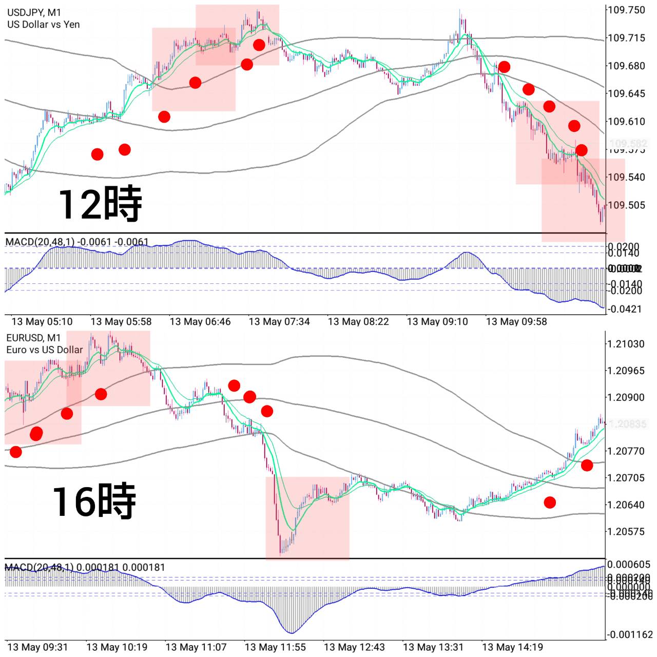 赤点:1日+3~10pipsのスキャルロジック(エントリーポイント)