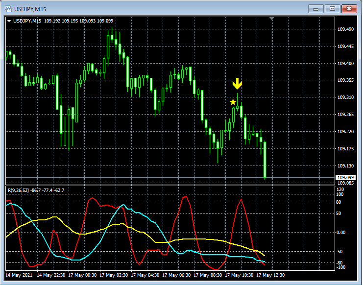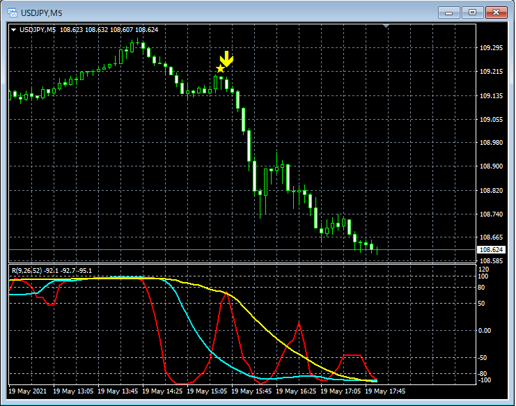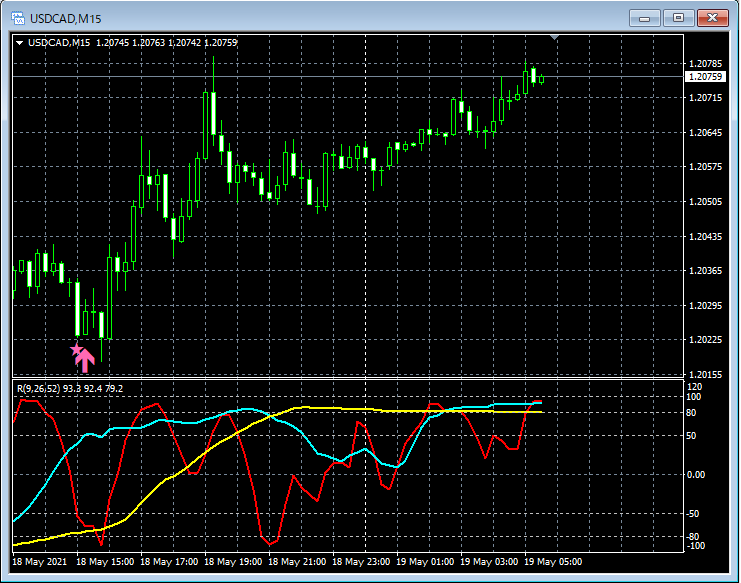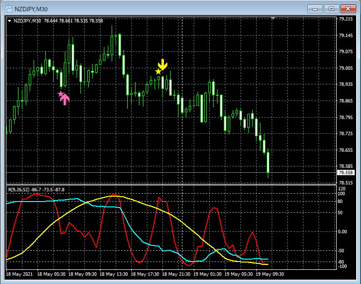 RCI3本ラインとの組み合わせで威力を発揮するインジケーター 5月17日~5月21日に見られたサインの例