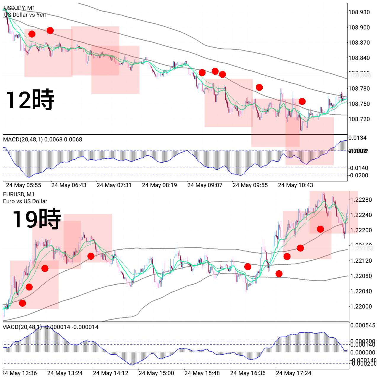 赤点:1日+3~10pipsのスキャルロジック(エントリーポイント)