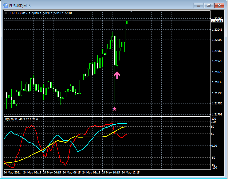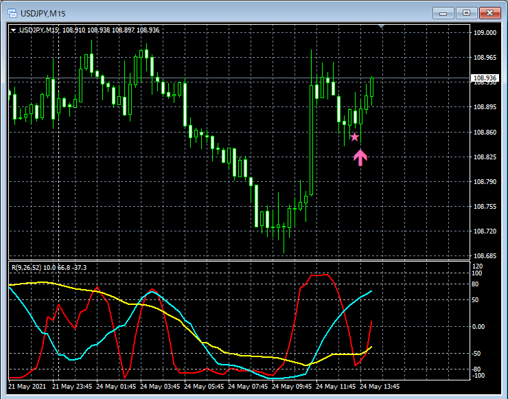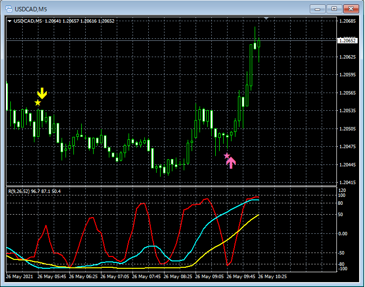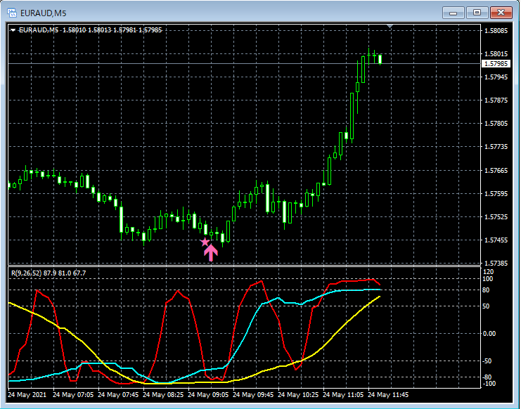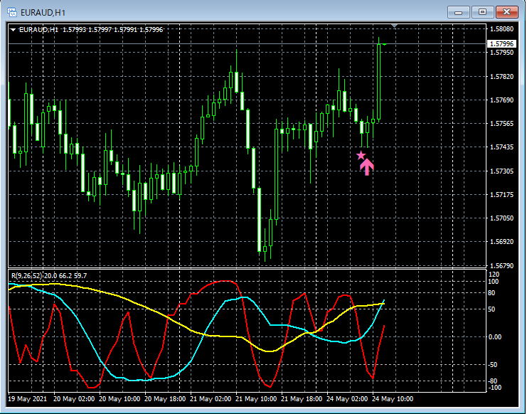 RCI3本ラインとの組み合わせで威力を発揮するインジケーター 5月24日~5月28日に見られたサインの例