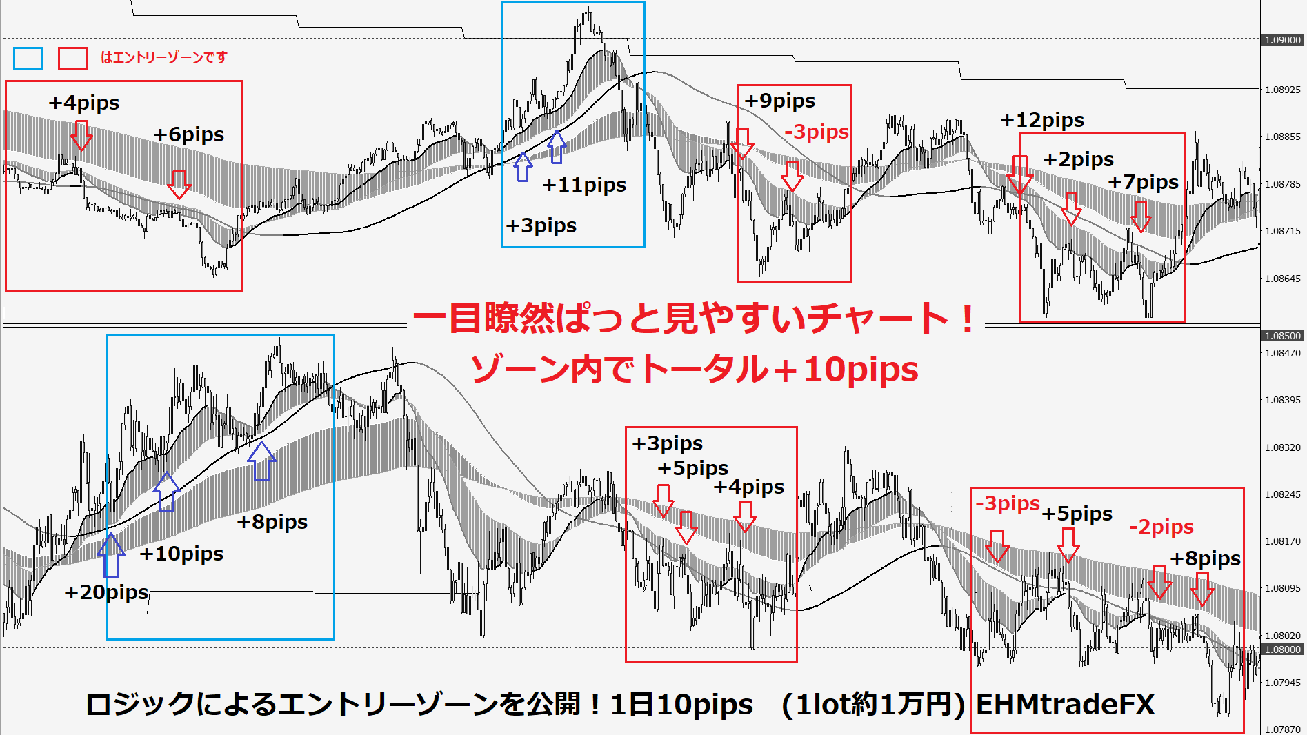 ■エントリーゾーン内で複数回、トレードして計10pipsを!