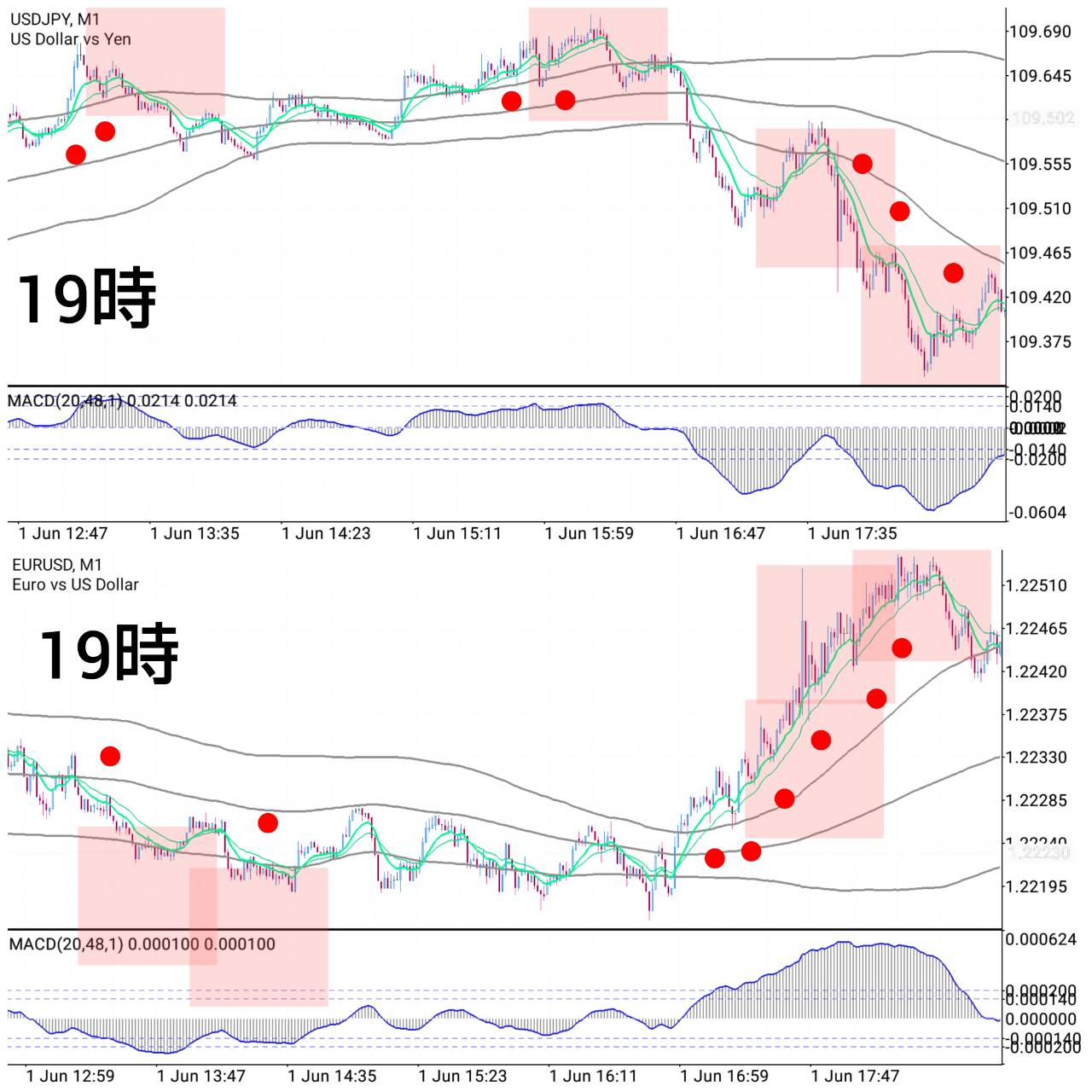 赤点:1日+3~10pipsのスキャルロジック(エントリーポイント)