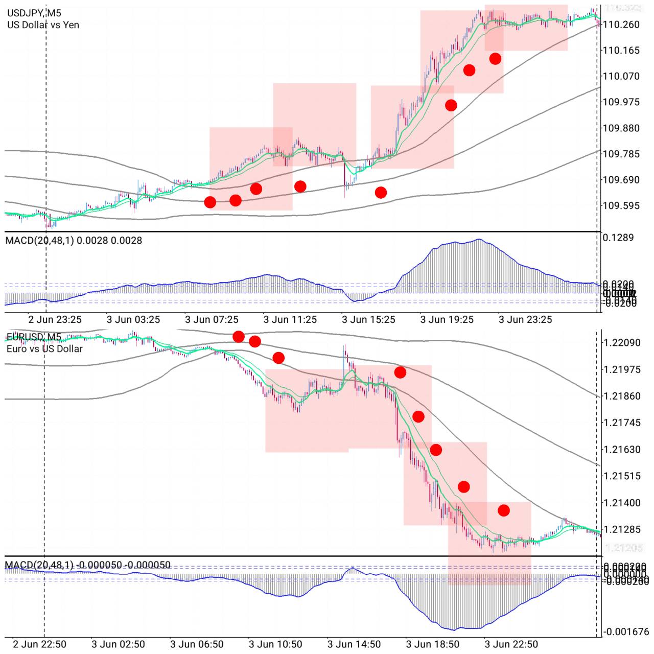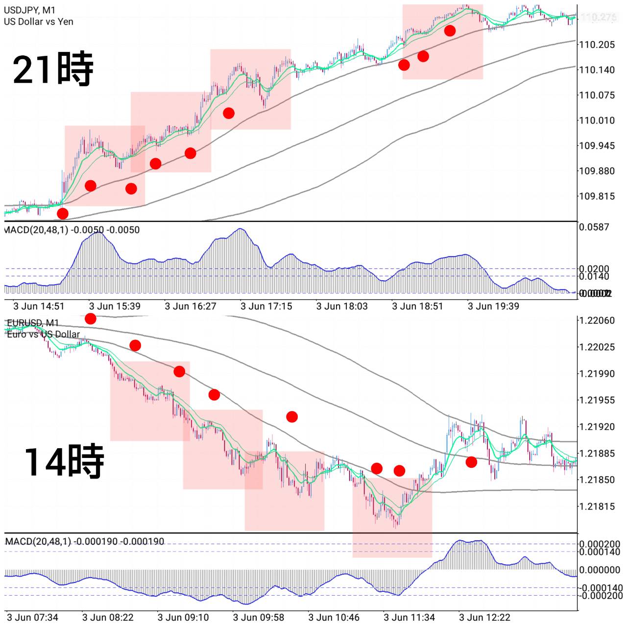 赤点:1日+3~10pipsのスキャルロジック(エントリーポイント)