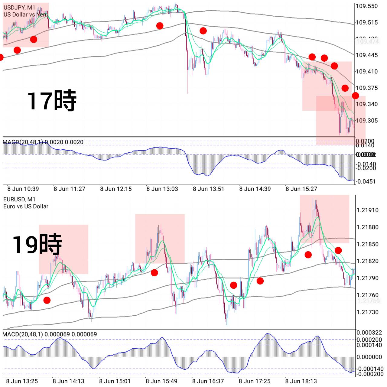 赤点:1日+3~10pipsのスキャルロジック(エントリーポイント)