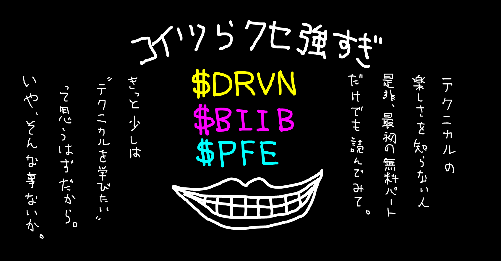 投票で人気の$DRVN、今後人気セクターの $BIIB、買い推奨の $PFE テクニカル解説始めまっす('Д')