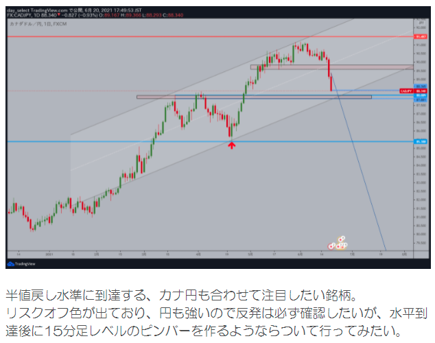 月曜日の記事で書いていたカナ円に関してはしっかり水平で反発後、現在180PIPS程伸びています。