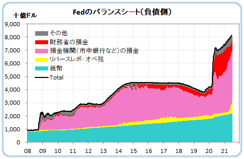 で、市中は受け取った資金を、回りまわってFRBに預金していた(負債側)。