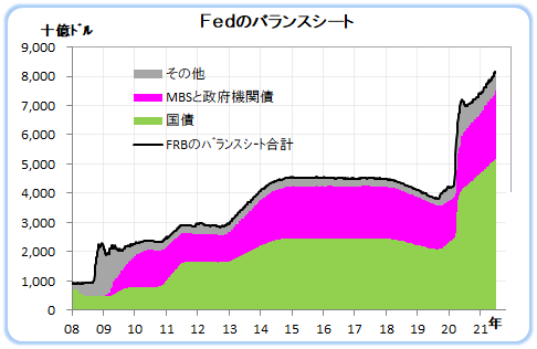 まず、昨年以降、市中から大量の資産(国債とMBS)購入を行っている(資産側)。