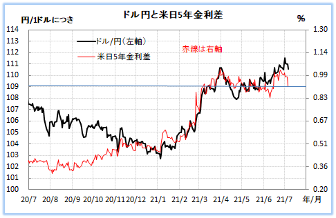 最近、ドル/円と米日5年金利差の相関が話題だが、次の通り。