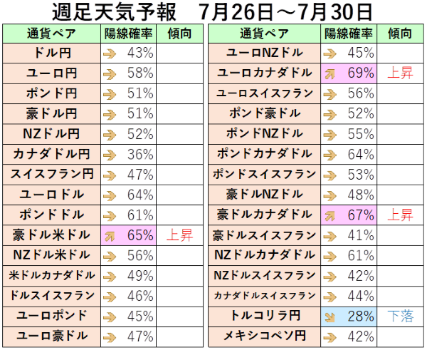 次は7月26日から8月6日までの日足の為替天気予報を紹介していきましょう。