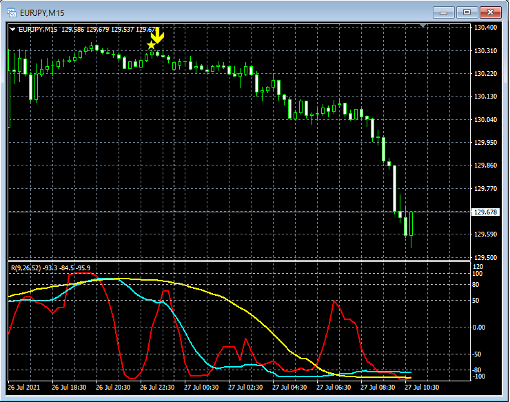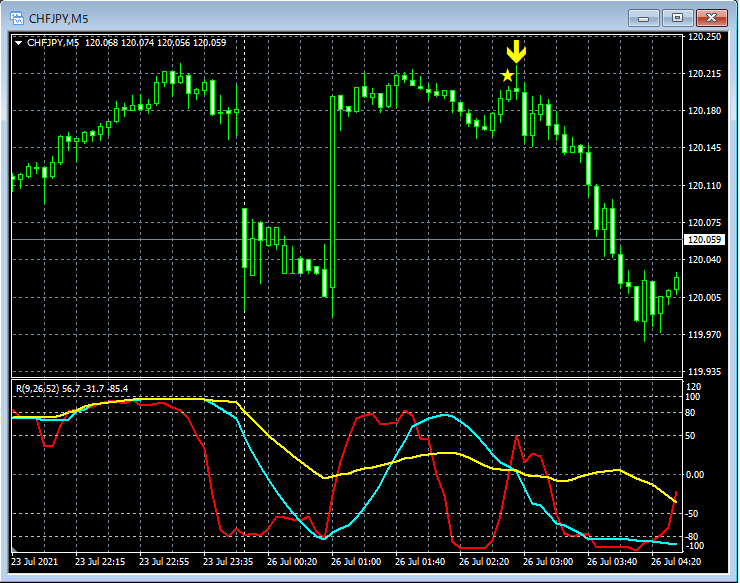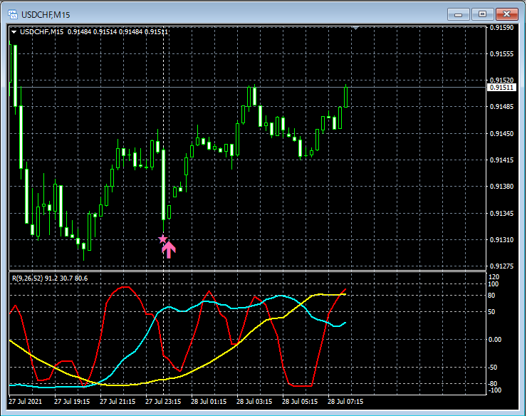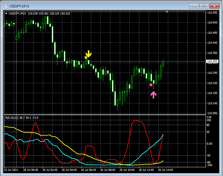 RCI3本ラインとの組み合わせで威力を発揮するインジケーター 7月26日~7月30日に見られたサインの例