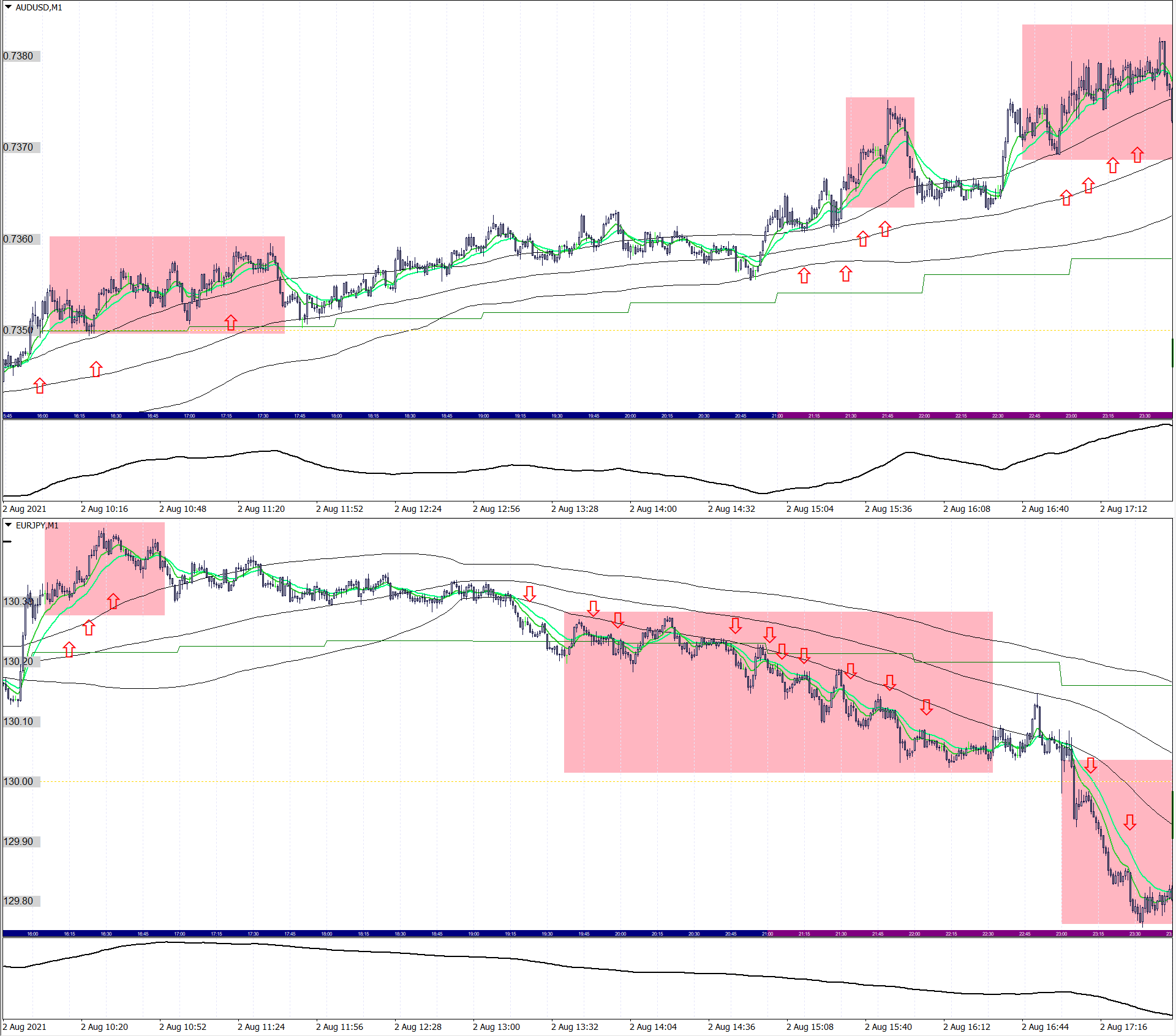 AUDUSD,EURJPY 8/02 【1日+10pips楽度★★★★★★】わかりやすい流れの通貨ペア