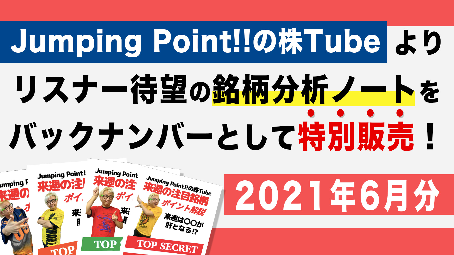 当ページは、『JumpingPoint!!の株Tube』から販売されている「来週の注目銘柄ポイント解説先出しノート」 &「 振り返りノート」のバックナンバー購入(2021年6月分)ページとなります。