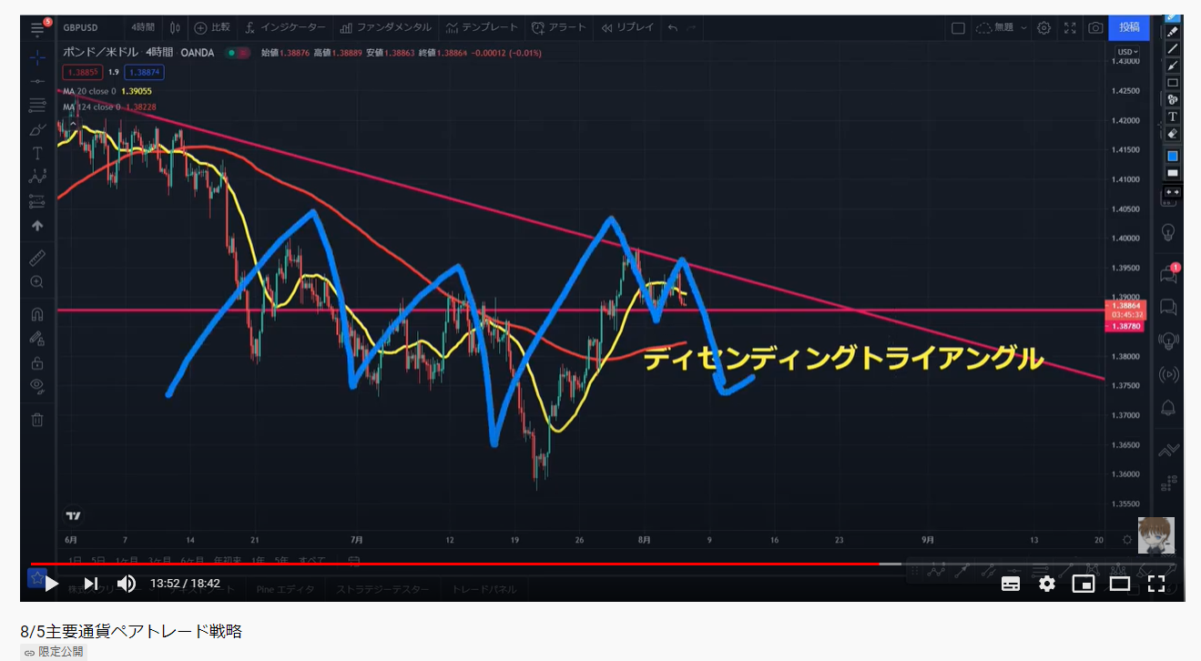 【FX】8月4日解説通りポンドドル下落!起点割れ実現!8月9日~主要通貨ペアトレード戦略徹底解説!