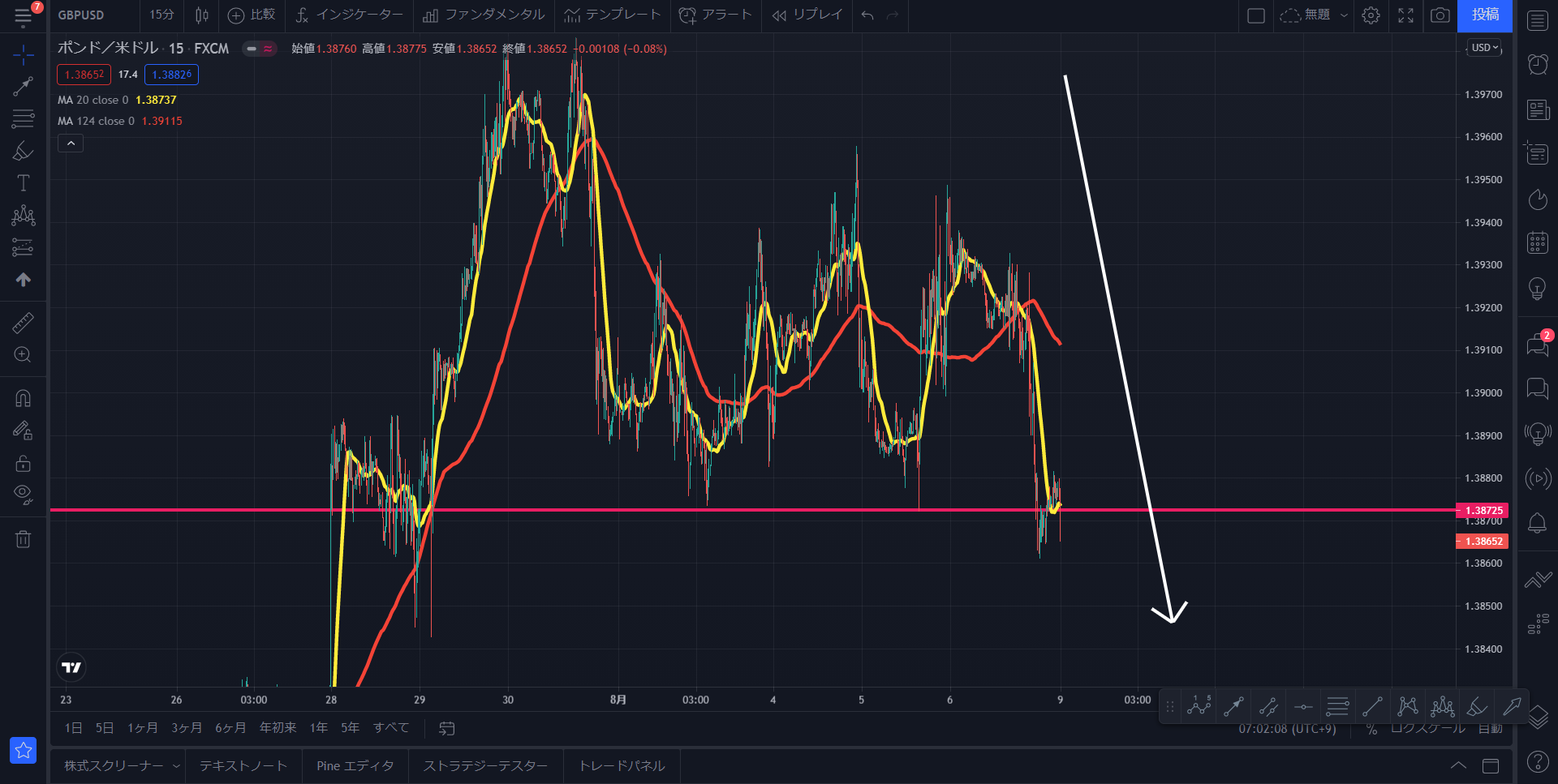 ?8/4解説通りGBPUSDポンドドル下落!起点割れ実現!