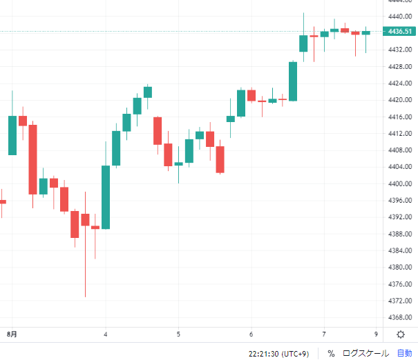 週後半には先週から頭を押さえられていた4420あたりのラインを突破