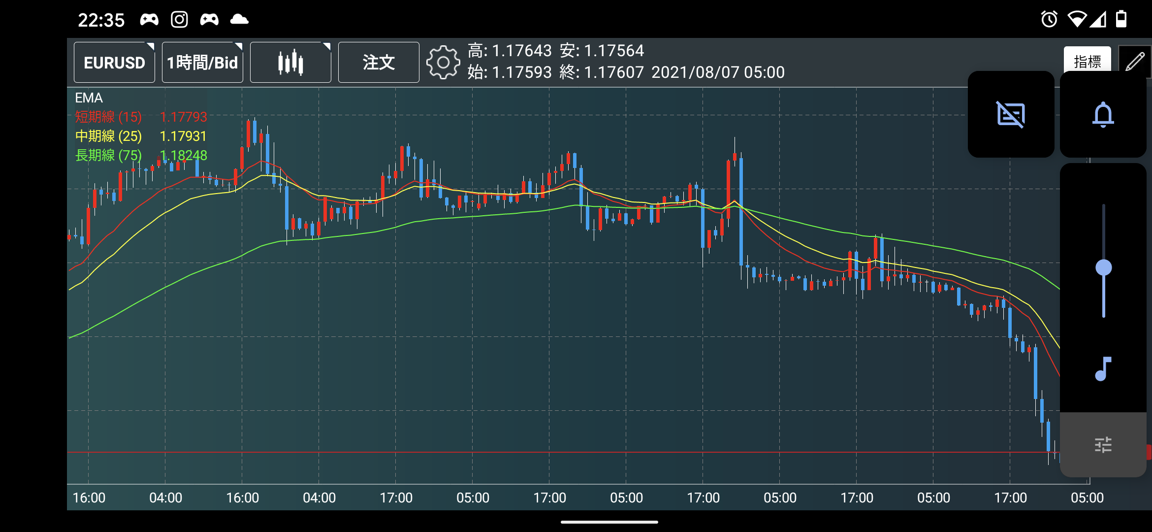今週前半まで上を向いていた75時間移動平均線がついに下を向きました