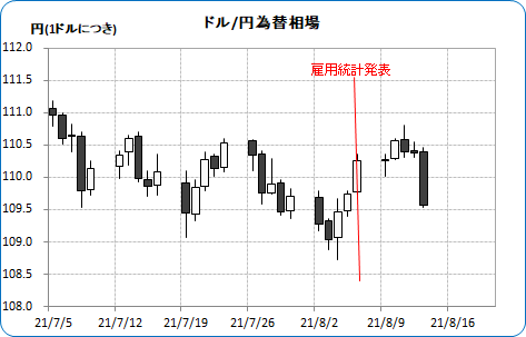 雇用統計で、非農業部門雇用者増加数の予想を市場より低く見ていたので、109.85でドル売り/円買いのポジションを取ったが、予想は大外れで、相場はドル高に動いた。