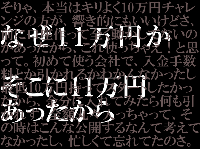 飛ばしたといっても、途中で元本の10万円分は出金していたので助かりましたが、