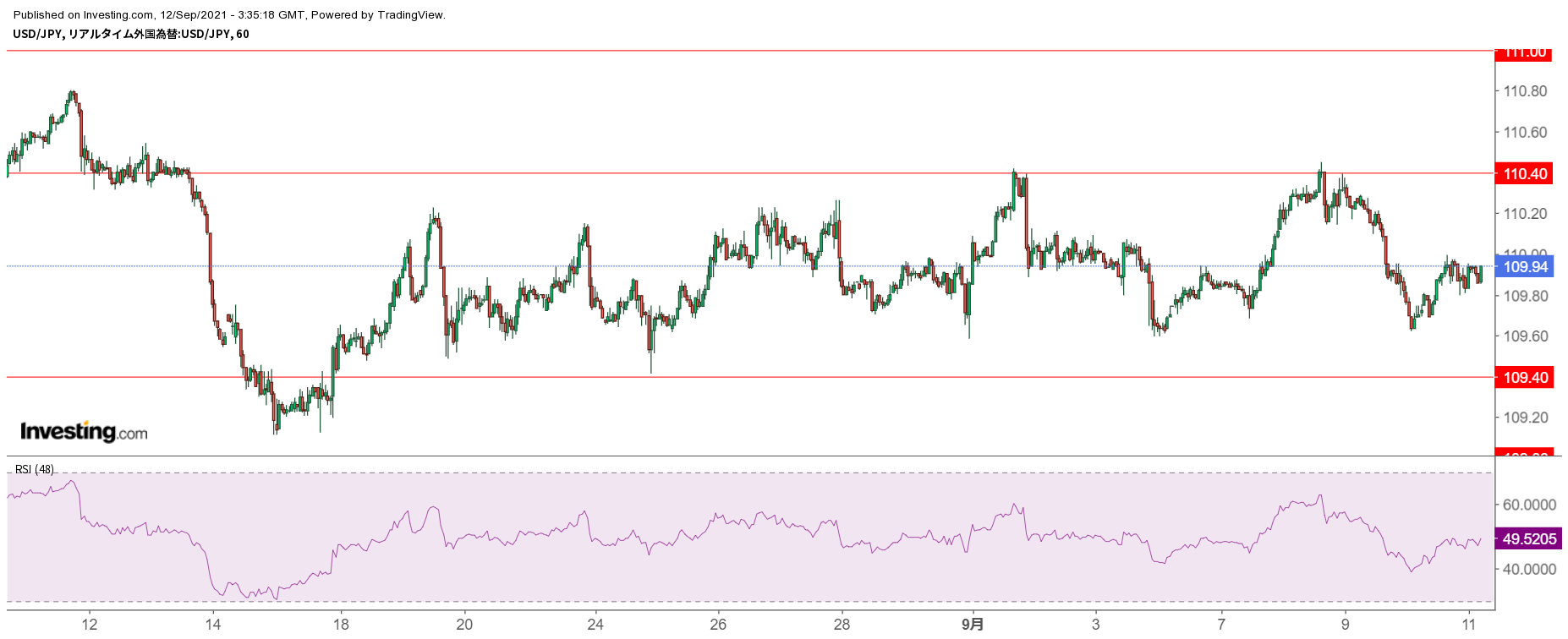 - 方針:短期は相場観を持たず109.40付近で買い、111.40付近で売りを徹底