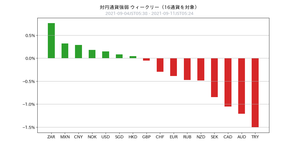 - トルコが売られる一方で、南アは買われるなど通貨によって強弱がしっかり出ている