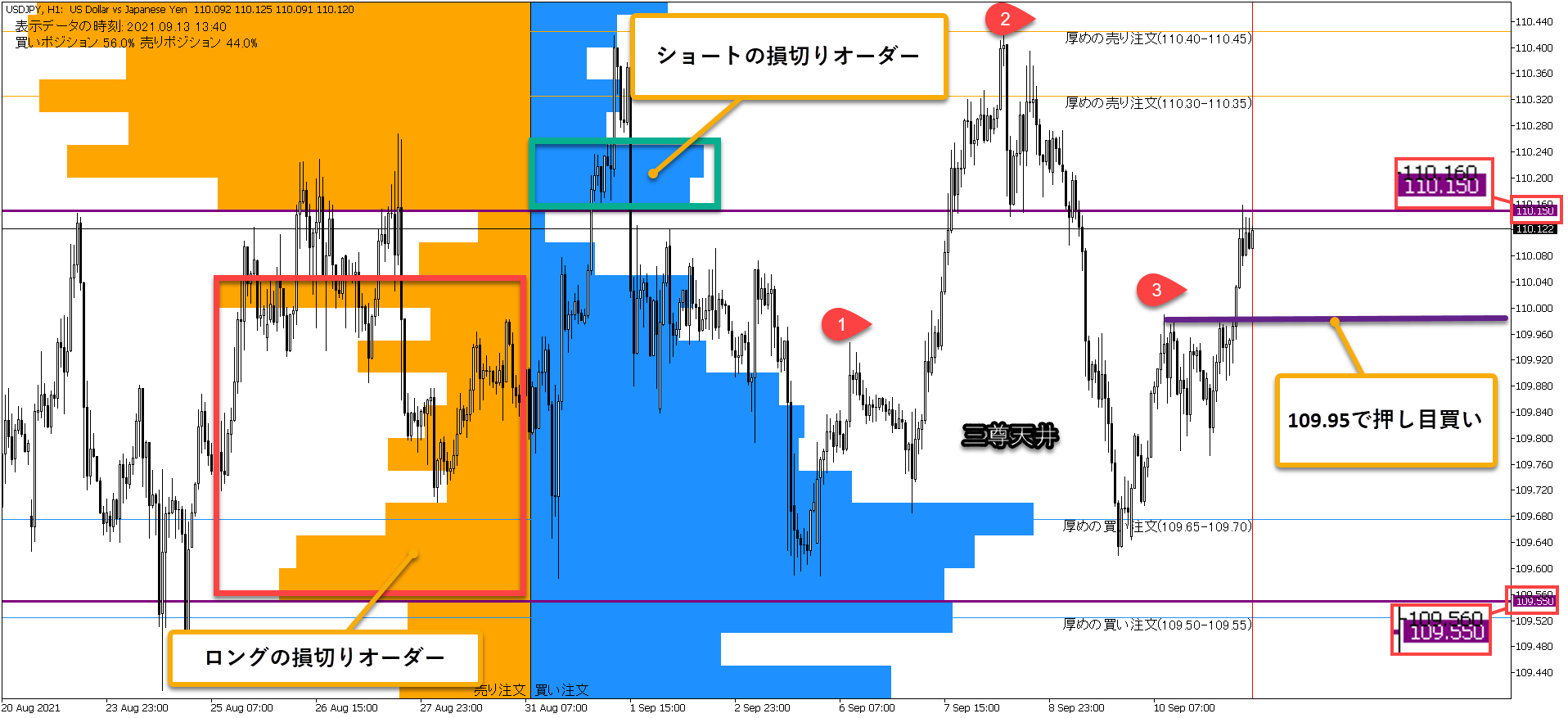 10/5(火)のオープンオーダー【1時間足】✅オープンオーダー【1時間足】の画像解説今夜のオーダーブックは・・・◇ロングの損切りオーダーが110.95から110.70まで入っています。◇ショートの損切