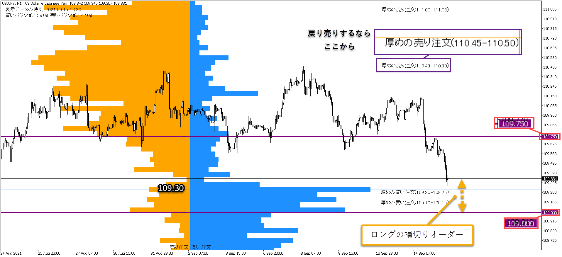 10/5(火)のオープンオーダー【1時間足】✅オープンオーダー【1時間足】の画像解説今夜のオーダーブックは・・・◇ロングの損切りオーダーが110.95から110.70まで入っています。◇ショートの損切