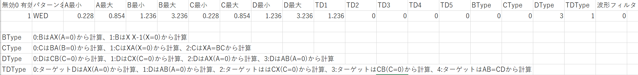 記載の数値は波形の図と同様ですが、 DTypeとTDTypeをA-B(A=0)から判定するため、それぞれ数値を設定しています。