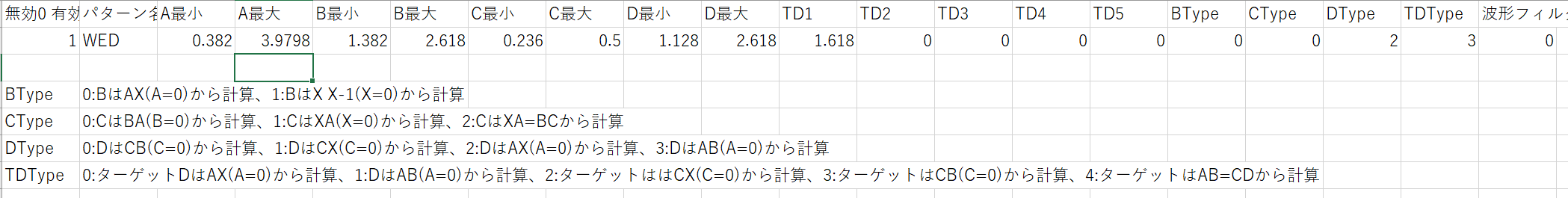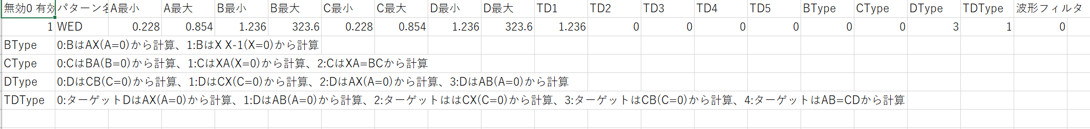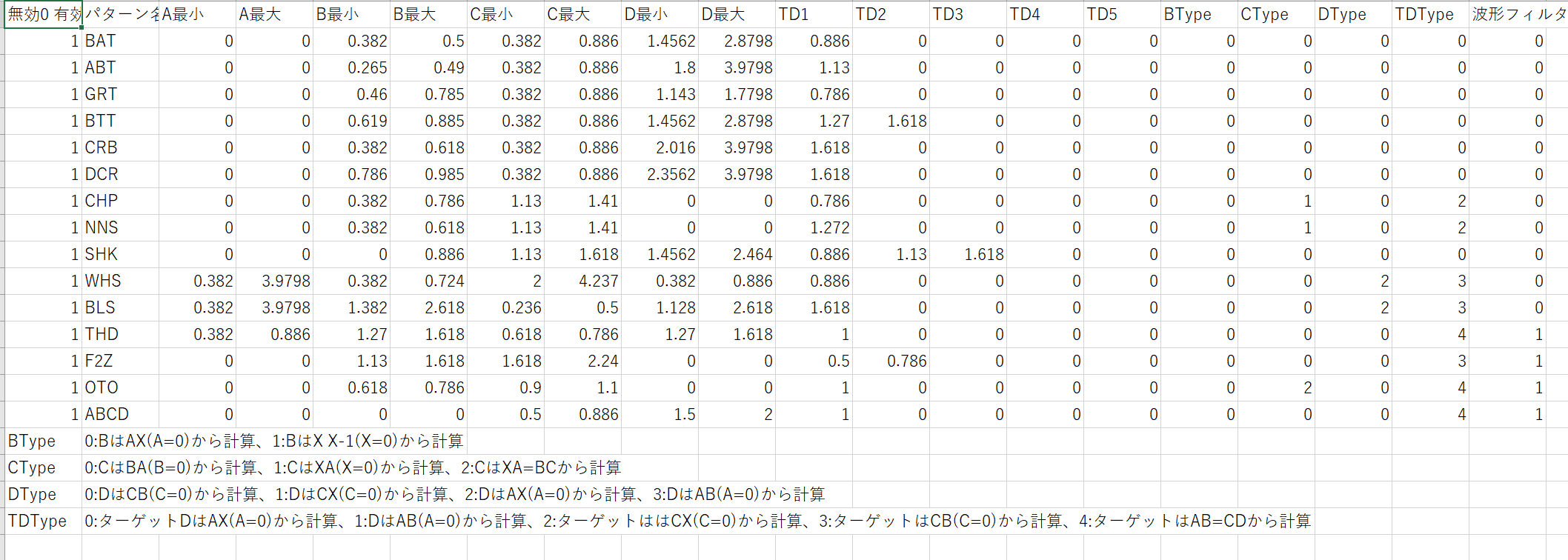 ※もし間違って保存した場合などは、HarmonicsPatternsV10.csvを一回削除ししてインジケータを起動するとデフォルト値のファイルが作成できます。