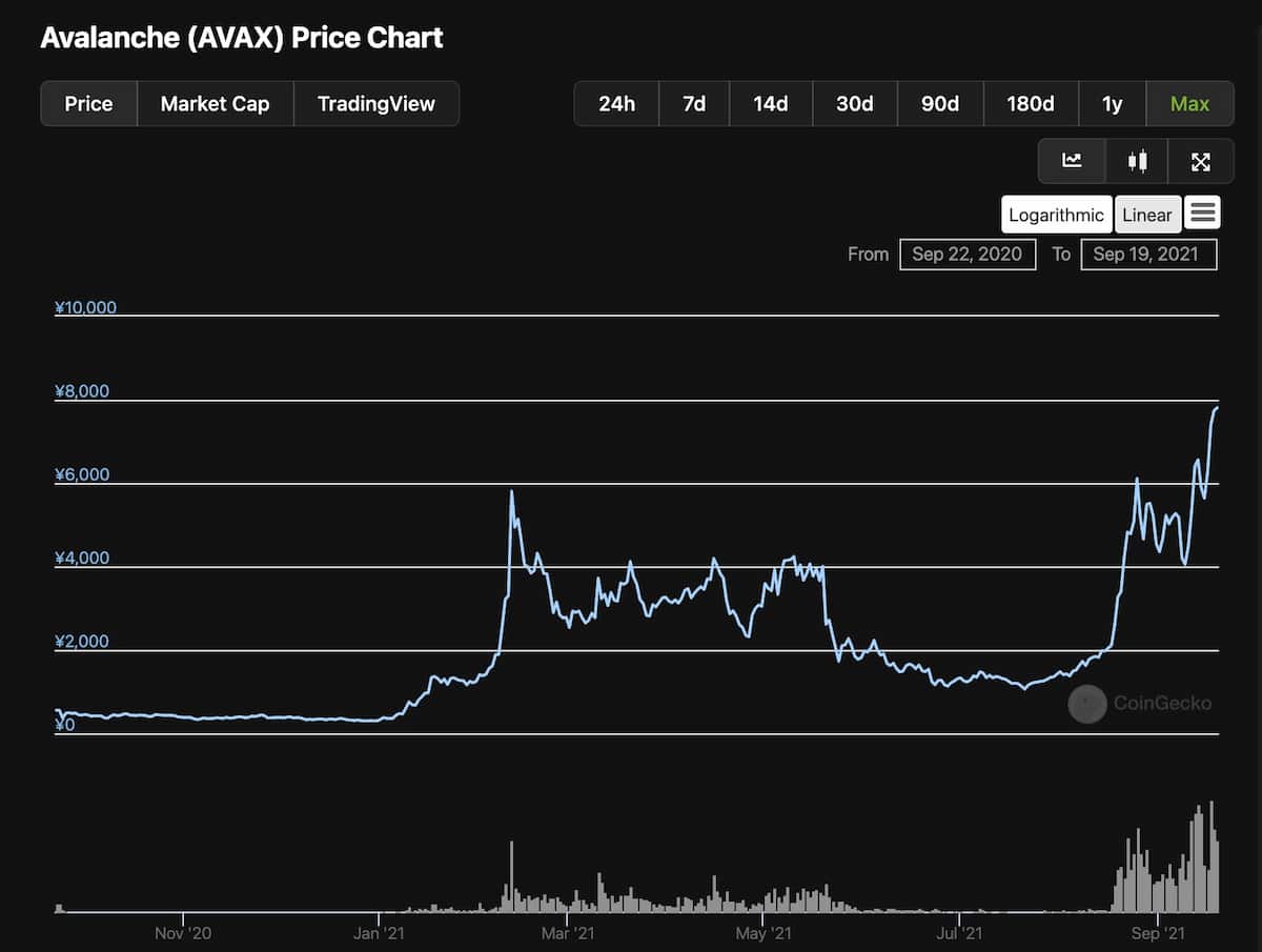 アバランチの仮想通貨をAVAXと言います。