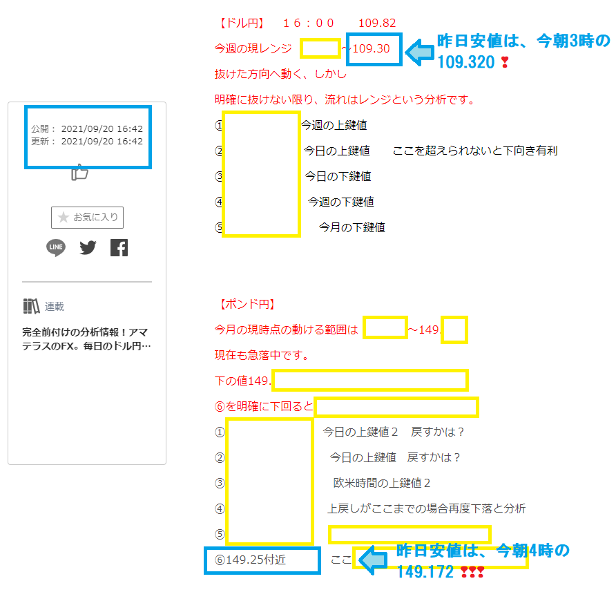 9月21日 ドル円&ポンド円昨日安値もピッタンコ!ヒント満載記事大公開!
