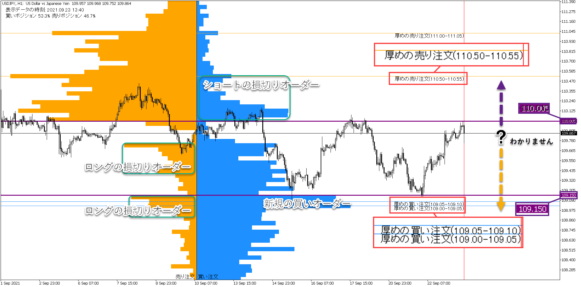 ショートの損切りオーダーは109.93から110.18まで入っています。