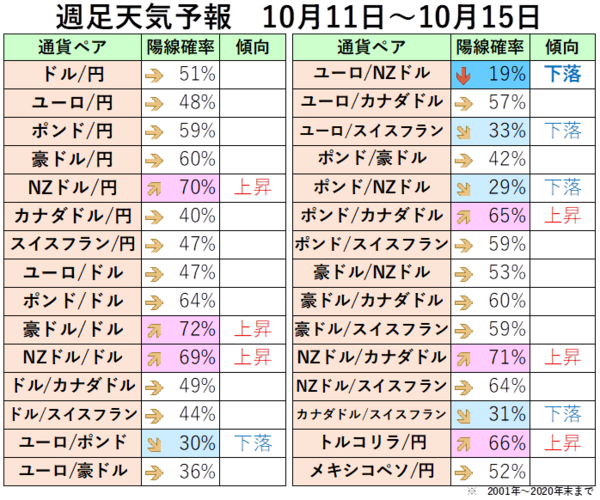 今回は10月4日~10月15日までの為替の傾向を紹介していきます。