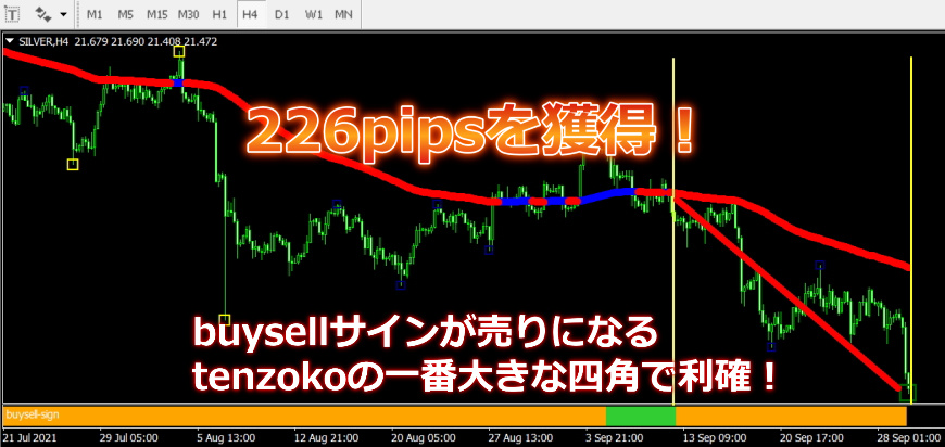 【2021年9月30日の実績】SILVERで短期間で226pipsを獲得!高勝率!最高のタイミングでエントリーできるインジケーター3種類セット。