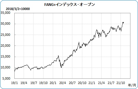 フェイスブックやアマゾン、ネットフリックス、グーグルなどで構成されるNYSE FANG+指数への連動を目指す投信「FANG+インデックス・オープン」のチャート