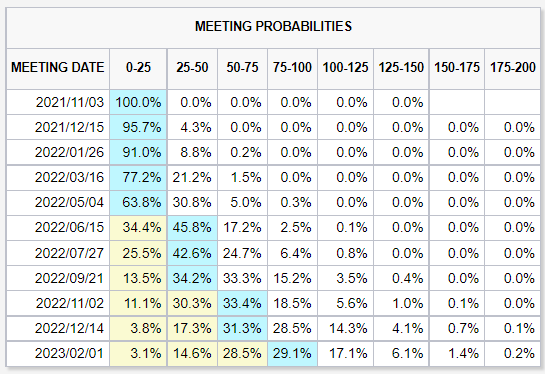 - 投資家の米金融政策見通しは2021年11月FOMCでテーパリング、2022年6月FOMCで利上げアナウンスがコンセンサス(前週よりもさらに手前の織り込みになった)。
