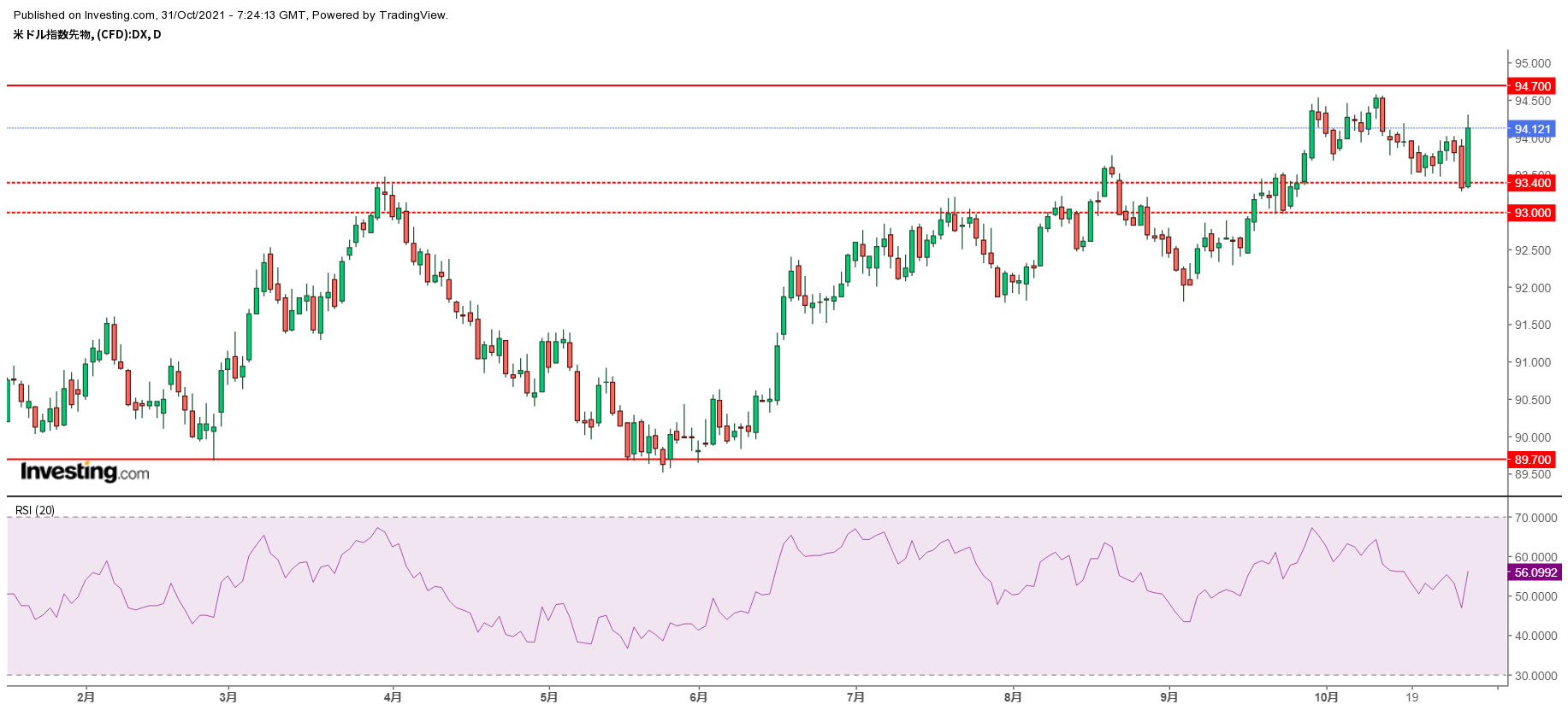 - 米利上げ時期の観測も前倒しになっており、前回トップの94.50、レジスタンスの94.70を上抜けられるか注目