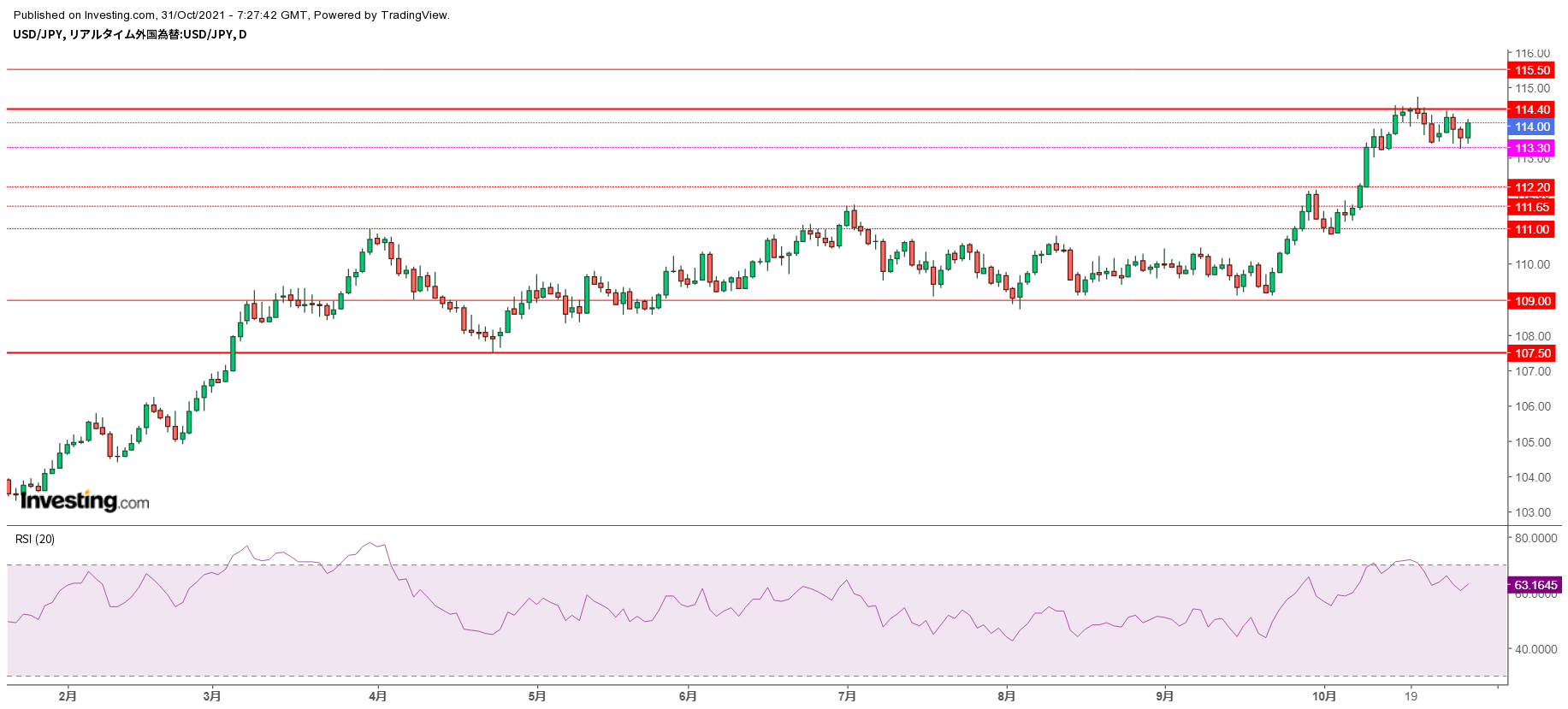 - 114.40、114.70(年初来高値)を超えられるかが注目