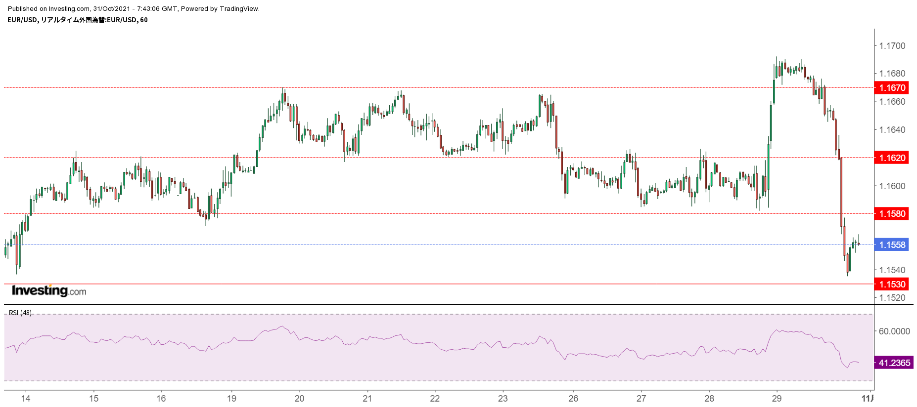 - 方針:戻り売り。1.1580~1.1620では売り先行のオペレーションを行いたい。1.1530を下抜けた場合は下についていく。